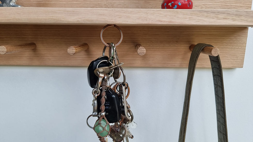 Handcrafted Tasmanian Oak 60 cm entryway organiser with pegs, magnets